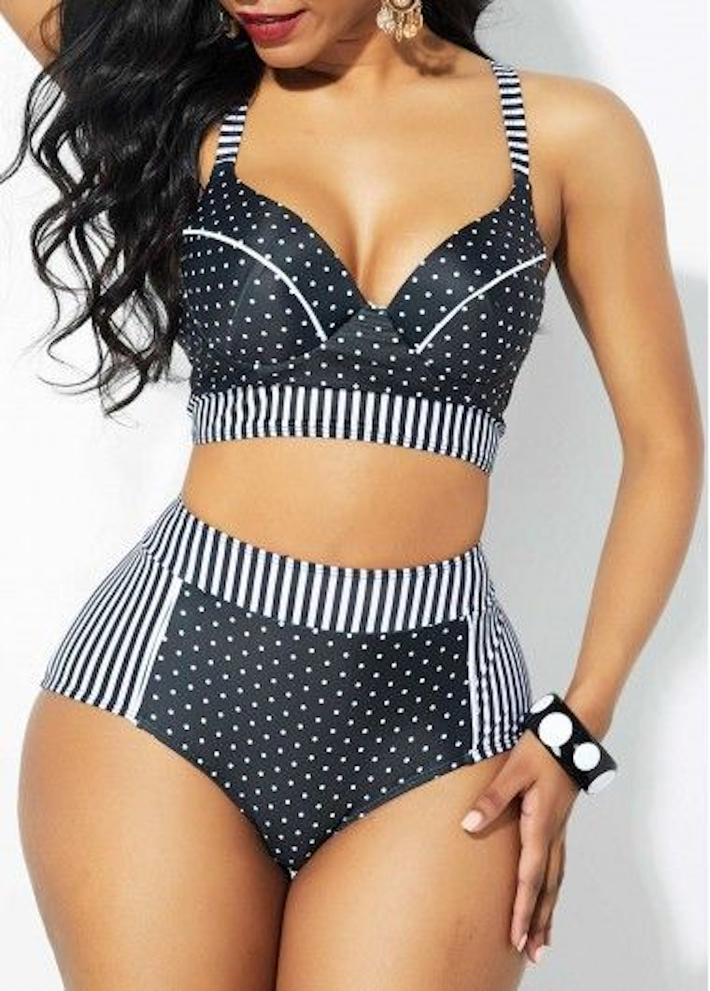 Lucky girl! Hourglass shape is considered the ideal body type by many women and men. The bust and the hips are usually the same size, and the waist is skinny. With this figure there are slim and curvy ladies too. Embrace your hips in high-waisted bottoms and invest to some sexy cut-out onepiece.